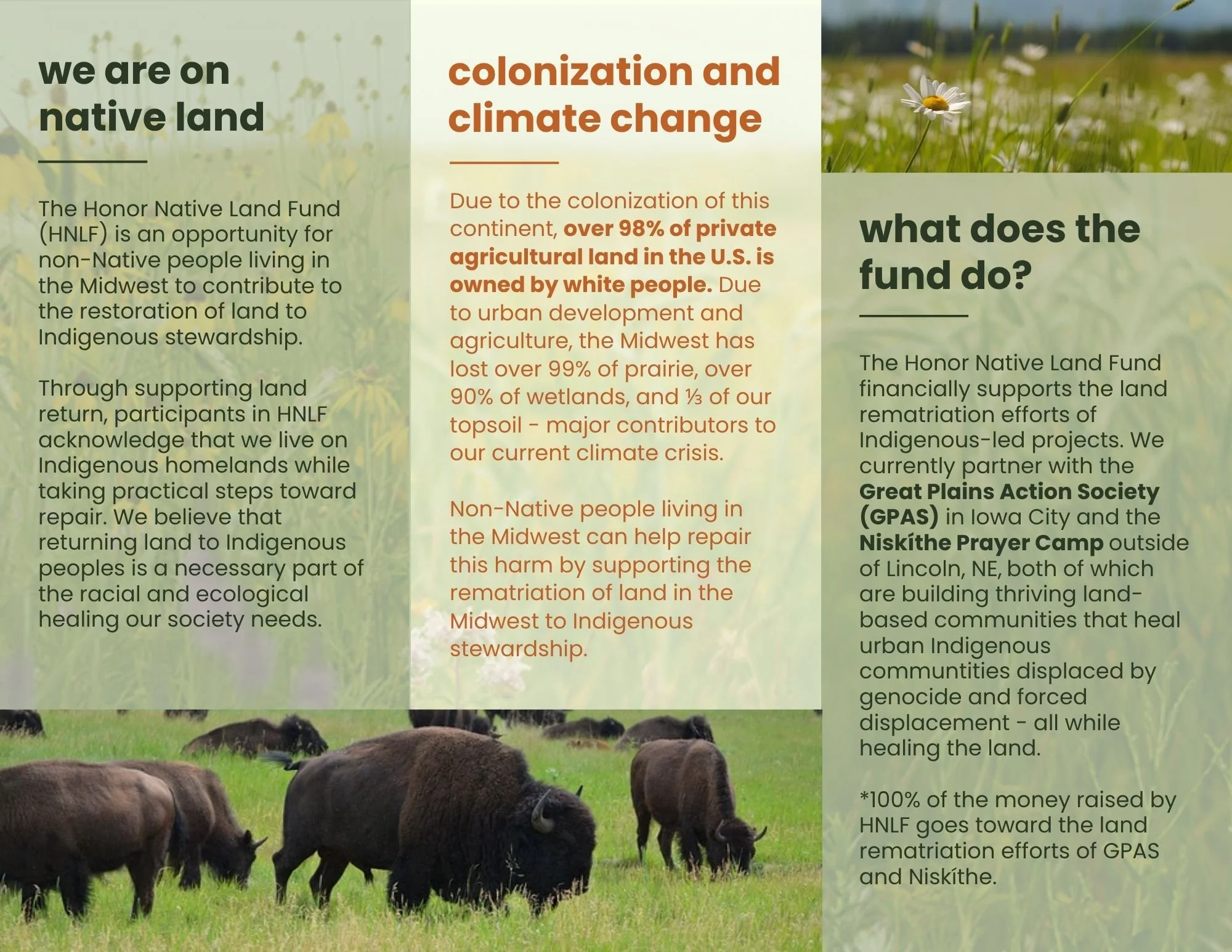 HNLF is organized through an all-volunteer network of non-Native folks living in the Midwest who understand that returning land to Indigenous stewardship is a necessary part of the racial and ecological healing our society needs.